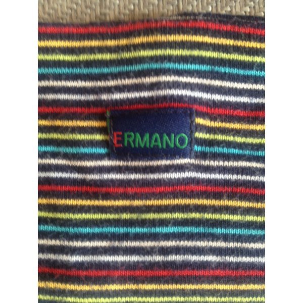 Stirnband der Marke Ermano. Weicher Stretch-Baumwollstoff, schwarz bunt gestreift, Länge: 22,5 cm (kann aber auch gut zusammengeklappt getragen werden)