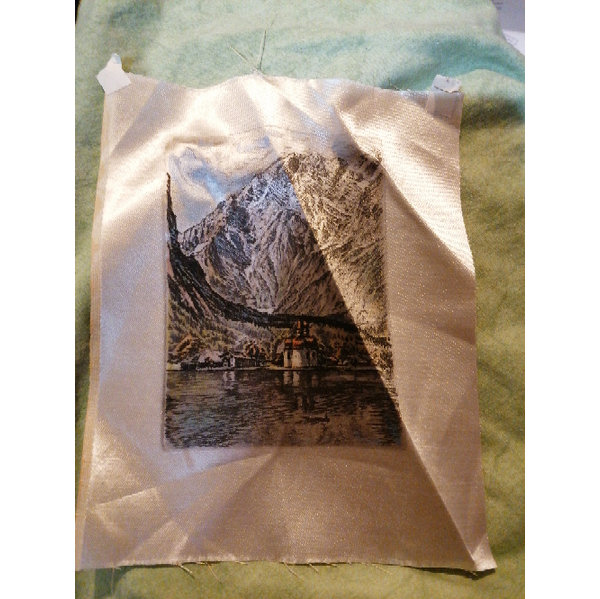Stoff Stoffstück mit Abbildung Kirche St. Bartholomä Königsee