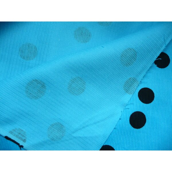 Stoff großer Stoffrest Cord Baumwolle Türkis schwarze Punkte