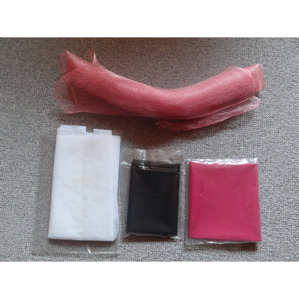 - weißes Vlies, eher etwas dickerer Stoff, ca. 2 m (längste Seite), ca. 0,34 m bis 0,80 cm (Breite)