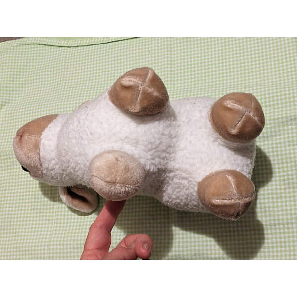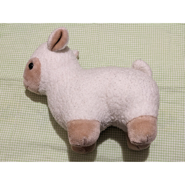 Das Schaf hat ein flauschiges Fell, das an echtes Schaffell erinnert.
