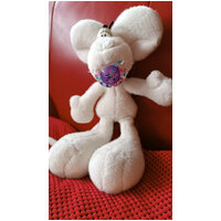naturweißes Bärchen mit braunkarierten Fußsohlen und Handinnenflächen. Bewegliche Arme und Beine, der Kopf läßt sich nicht ... mehr