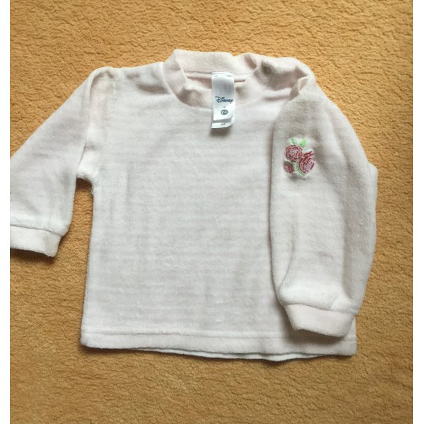 Warmer Frottee-Strampler mit Winnie Pooh und Tiger Applikation mit jeweils zwei Druckknöpfen auf den Schulter, passendes Oberteil rosa/weiß gestreift mit aufgestickten Rosen auf dem Oberarm