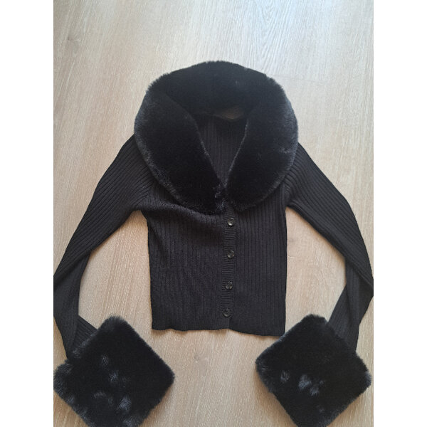 Feminine Strickjacke mit abknöpfbarem Kunstfellkragen und Manschetten
