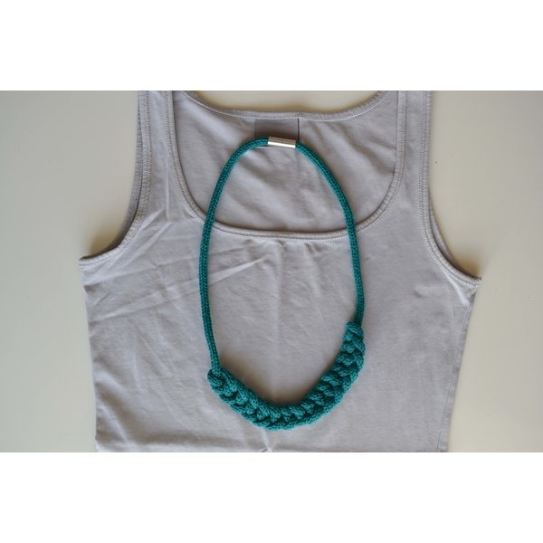 Mit der Strickliesel gemachte Halskette, die jeden langweiligen Pulli oder jedes alte T-shirt aufpeppt! Die Statement-Kette sitzt locker um Deinen Hals und ist weich und angenehm zu tragen. Mit dem Magnetverschluss kann die Kette einfach um den Hals gebracht werden.