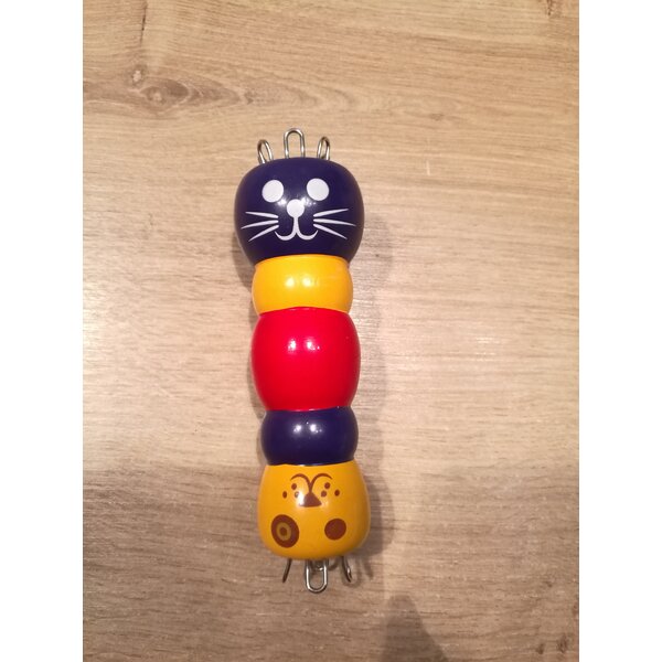 Bunte Strickliesel mit vmtl. Katzengesichtern