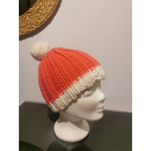 Strickmütze flamingo und cremeweiß Beanie, Einheitsgröße handgefertigt