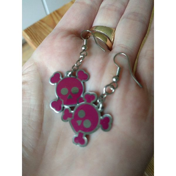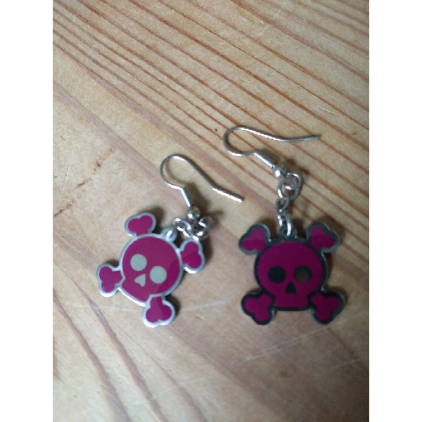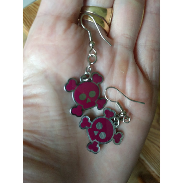 Süße Rockabilly Ohrringe mit pinken Totenköpfen , vorne und hinten gleich