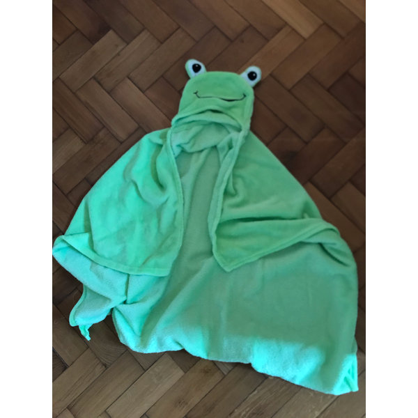 Super flauschig, das Köpfchen kommt in die Froschkapuze, so dass die Haare schneller trocknen.