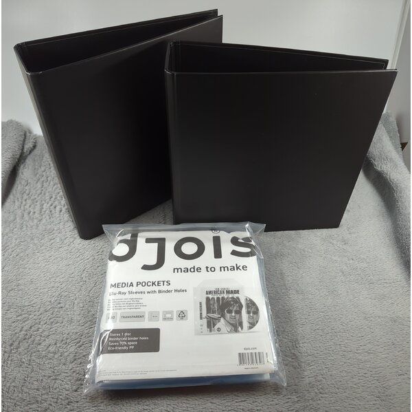 Unbenutzt, sind bei mir übrig geblieben. Man spart sich ca. 70 % platz. Lieferumfang: 2x Ringordner + 50x Blu-ray Hüllen mit Ringbuch-Löchern