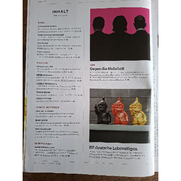 Alexander Wendt – Die Ampelkoalition will eine „große Transformation“ aller Lebensbereiche – gegen die Bevölkerung +++ Hans-Matthias Kepplinger – Der Kommunikationsforscher spricht im Interview über schweigende Mehrheiten +++ Syp Wynia – In den Niederlanden hat die Politik die Autorität des Staates zerstört. Die Folge ist Gewalt +++ Paul Cullen – In Deutschland droht der Impfzwang. Doch die Corona-Vakzine sind medizinisch umstritten +++ Marco Gallina – Der traurige Klimagipfel von Glasgow +++ Peter Györkös – Ungarns Botschafter in Berlin im Gespräch mit Max Roland über den Schutz der EU-Außengrenzen +++ Laszlo Trankovits – Elf deutsche Lebenslügen +++ Tomas Spahn – Hauptsache, die Grünen schaden den USA nicht +++ Cora Stephan – Aus der Geschichte lernen? Von wegen! +++ Pauline Schwarz – Selbst deutsche Jugendlich fühlen sich von muslimischer Subkultur angezogen +++ Elisa David – Die Linke hat ihr Sexappeal verloren. Sie hat keine Lieder mehr, nur noch Predigten +++ Max Mannhart – Die alten Institutionen der Bundesrepublik haben vergessen, dass man nachfolgenden Generationen etwas anbieten muss +++ Hans-Werner Sinn – Interview mit Roland Tichy über die Ursachen der aktuellen Inflation und ihre Folgen +++ Oswald Metzger – Unzulässige Renten-Doppelbesteuerung +++ Walter Krämer – Die Angst vor dem Impfdurchbrüchen +++ Krisztina Koenen – Tradition zum Anstoßen. Der Apfelwein erobert sich Frankfurt am Main zurück +++ Matthias Matussek – Vor 165 Jahren starb Heinrich Heine. Eine Würdigung des großen deutschen Dichters +++ Buchempfehlungen für dunkle Wintertage +++ Wolfgang Herles – Grüner Klassenkampf u.v.w.m.