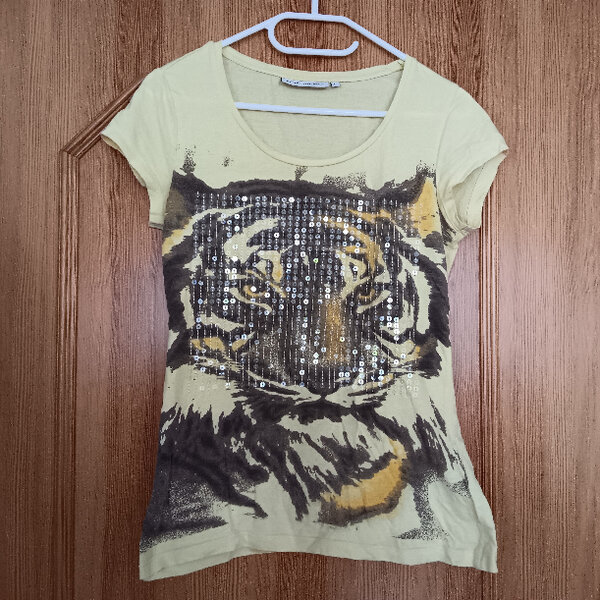 getragen, leichtes Peeling, links unten fehlen 2 Pailetten, evtl. auch im Bild,kann man nur sehr schwer erkennen,