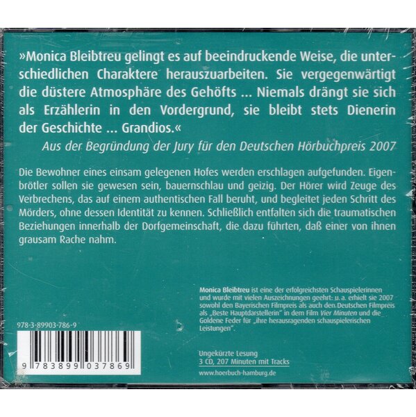 Die Bewohner eines einsam gelegenen Hofes werden erschlagen aufgefunden. Eigenbrötler sollen sie gewesen sein, bauernschlau und geizig. Der Leser wird Zeuge des Verbrechens, das auf einem authentischen Fall beruht, und begleitet jeden Schritt des Mörders, ohne dessen Identität zu kennen. Schließlich entfalten sich die traumatischen Beziehungen innerhalb der Dorfgemeinschaft, die dazu führten, daß einer von ihnen grausam Rache nahm.