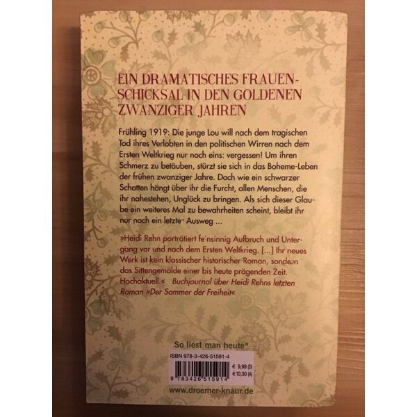 Frühling 1919: Die junge Lou will nach dem tragischen Tod ihres Verlobten in den Wirren der Münchner Räterepublik nur noch eines: vergessen! Um ihren Schmerz zu betäuben, stürzt sie sich in das Bohème-Leben der frühen Zwanzigerjahre. Doch wie ein schwarzer Schatten hängt die Vorstellung über ihr, allen Menschen, die ihr nahestehen, Unglück zu bringen. Als sich dieser Glaube ein weiteres Mal zu bewahrheiten scheint, bleibt ihr nur noch ein letzter Ausweg ...