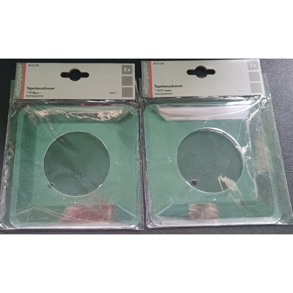 Biete hier 2x2 also insgesamt 4 transparente Tapetenschoner für Lichtschalter oder Steckdosen an, beide noch original verpackt.