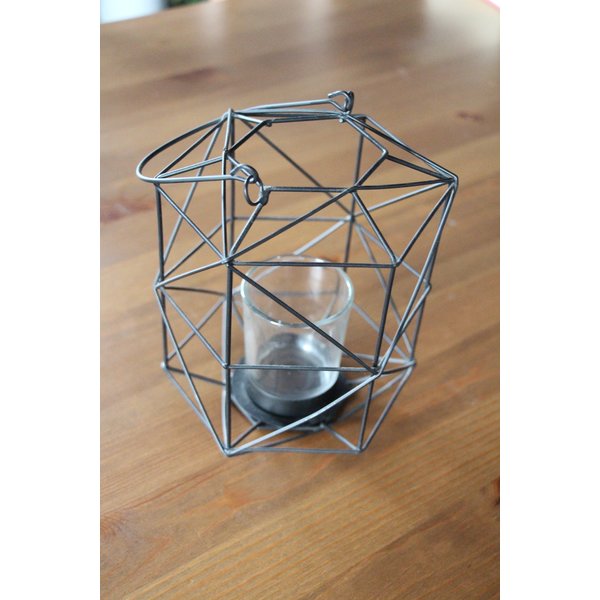 Teelichthalter, schwarzes Gestänge. Kann gestellt oder aufgehängt werden