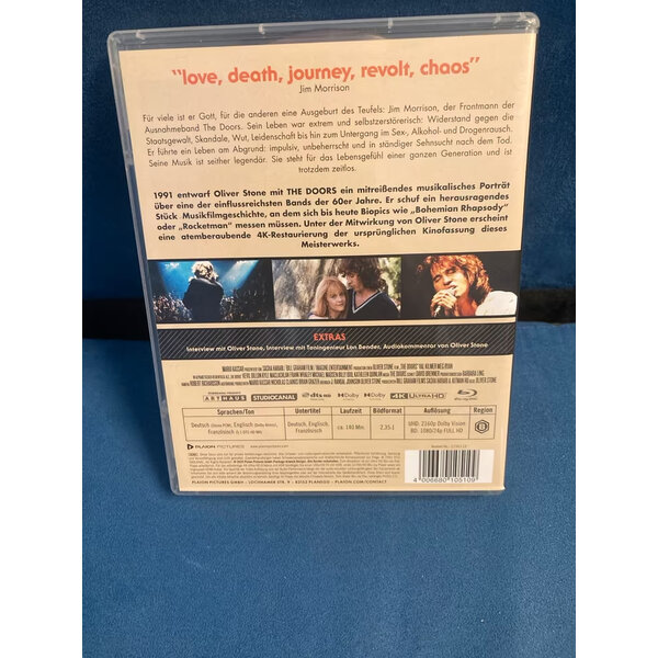 Für die einen ein Gott, für die anderen die Ausgeburt des Teufels: Jim Morrison (Val Kilmer), der legendäre Frontmann von The Doors, liebt den rauschhaften Tanz am Rande des Abgrunds. Sein Leben ist eine explosive Mischung aus Leidenschaft, Wut, Selbstzerstörung und Todessehnsucht. Als er mit nur 27 Jahren stirbt, hat Jim Morrison mit dem einzigartigen Sound der Doors bereits eine ganze Generation geprägt und ein unsterbliches musikalisches Erbe hinterlassen. Oliver Stone beleuchtet in seinem Biopic den Werdegang von The Doors-Frontmann Jim Morrison, der sich als Ikone der 1960er Jahre ins kollektive Gedächtnis eingebrannt hat. Neben Hauptdarsteller Val Kilmer sind Kyle MacLachlan, Kevin Dillon und Frank Whaley als weitere Bandmitglieder von The Doors zu sehen, sowie Meg Ryan als Jims Freundin Pamela. Die beiden Doors-Musiker Robby Krieger und John Densmore wirkten als Berater am Film mit und verhalfen so insbesondere den Konzertszenen zu einer seltenen Authentizität.