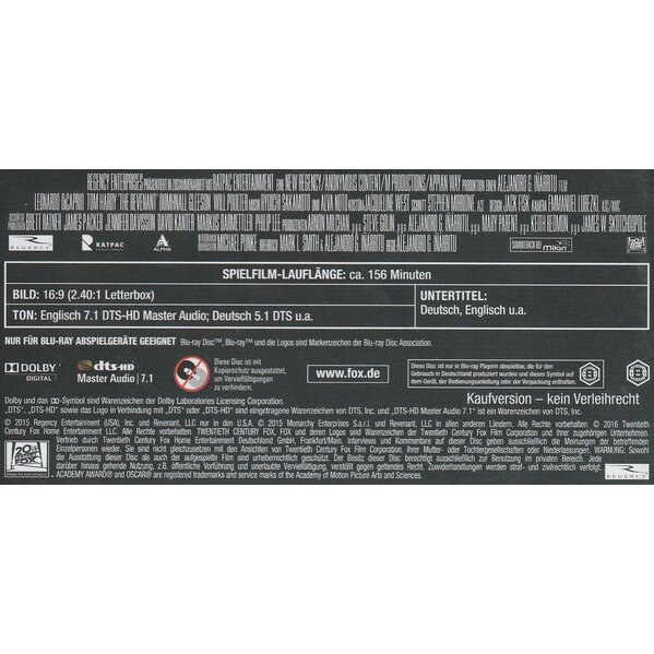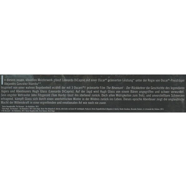 Bei einer Expedition tief in der amerikanischen Wildnis wird der legendäre Forscher und Abenteurer Hugh Glass (Leonardo DiCaprio) brutal von einem Bären attackiert. Seine Jagdbegleiter, die überzeugt sind, dass er dem Tod geweiht ist, lassen ihn zurück. In seinem Überlebenskampf erleidet Glass unerträgliche Qualen und muss erleben, dass auch sein engster Vertrauter John Fitzgerald (Tom Hardy) ihn verrät und im Stich lässt. Mit übermenschlichem Willen zu überleben und angetrieben durch die Liebe zu seiner Familie kämpft Glass sich durch einen unerbittlichen Winter in der Wildnis zurück ins Leben.