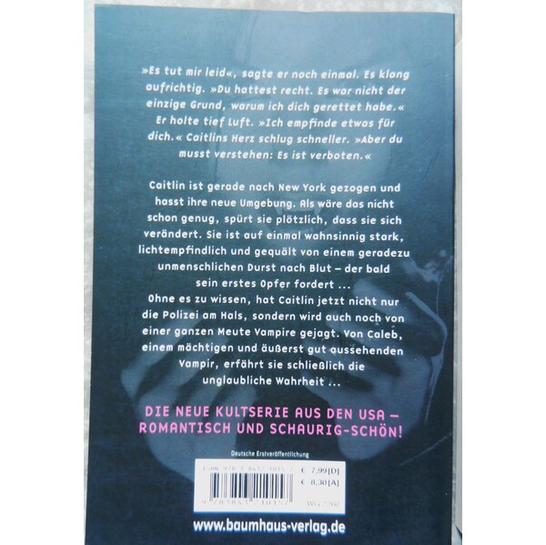 Caitlin ist gerade nach New York gezogen und hasst ihre neue Umgebung. Als wäre das nicht schon genug, spürt sie plötzlich, dass sie sich verändert. Sie ist auf einmal wahnsinnig stark, lichtempfindlich und gequält von einem geradezu unmenschlichen Durst nach Blut - der bald sein erstes Opfer fordert - Ohne es zu wissen, hat Caitlin jetzt nicht nur die Polizei am Hals, sondern wird auch noch von einer ganzen Meute Vampire gejagt. Doch unerwartet bekommt sie Hilfe von Caleb, einem mächtigen und äußerst gut aussehendenVampir ... Die Kultserie aus den USA - romantisch und schaurig-schön!