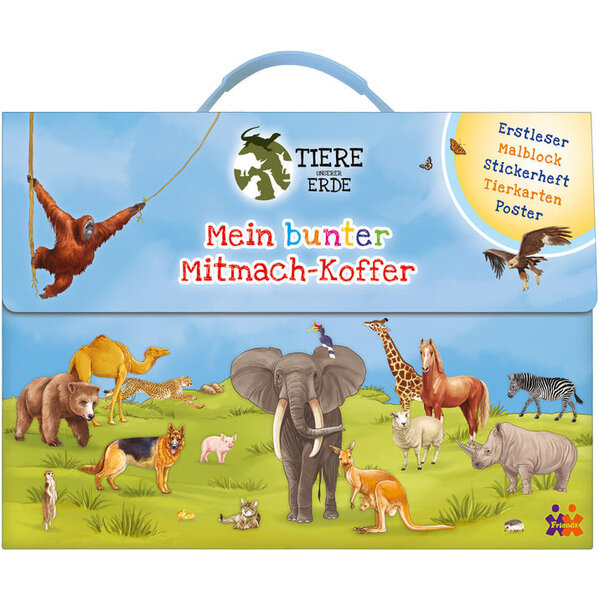 Mit diesem bunten Koffer kommen kleine Tierfreunde voll auf ihre Kosten: ein Erstlesebuch mit tollen Tiergeschichten, ein Malblock mit schönen Ausmalbildern, ein Stickerbuch mit über 300 Tierstickern, die auf die Hintergründe geklebt werden können, ein großes Poster und 9 Karten mit Tierinfos . Ein Muss für alle kleinen Tierfreunde!