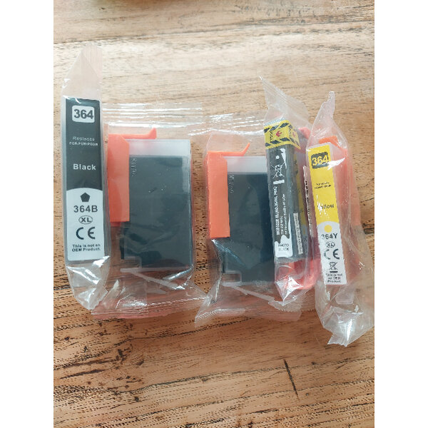 3x 364 xl Black, 1 x 364 yellow, 1 x 364 photo black. Alle neu und originalverpackt. Mein HP Drucker ist leider kaputt gegangen, daher habe ich keine Verwendung mehr.