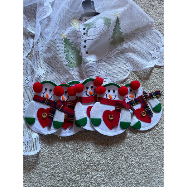 die Tischdecke wurde einmal kurz benutzt, ohne Mängel, die Bestecktaschen sind neu