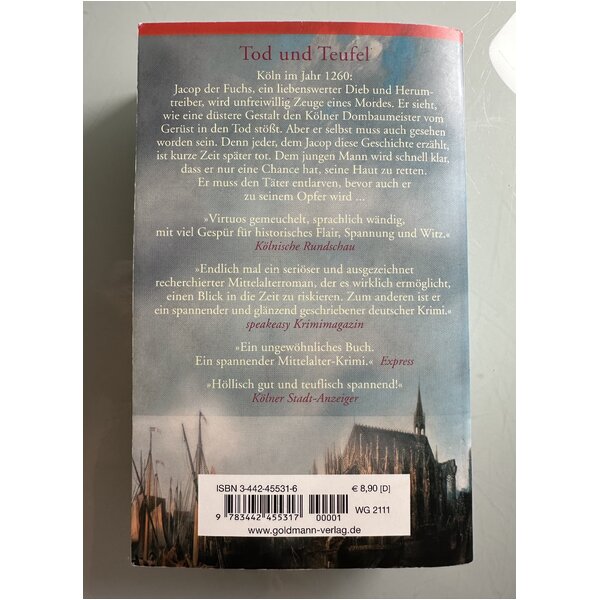 Köln im Jahr 1260: Jacop der Fuchs, ein liebenswerter Dieb und Herumtreiber, wird unfreiwillig Zeuge eines Mordes. Er sieht, wie eine düstere Gestalt den Kölner Dombaumeister vom Gerüst in den Tod stößt. Aber er selbst muss auch gesehen worden sein. Denn jeder, dem Jacop diese Geschichte erzählt, ist kurze Zeit später tot. Dem jungen Mann wird schnell klar, dass er nur eine Chance hat, seine Haut zu retten. Er muss den Täter entlarven, bevor auch er zu seinem Opfer wird ...