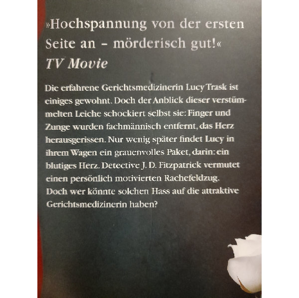 Die erfahrene Gerichtsmedizinerin Lucy Trask ist einiges gewöhnt. Doch der Anblick dieser verstümmelten Leiche schockiert selbst sie nachhaltig. Zunge und Herz wurden dem Toten fachmännisch entfernt. Nur wenige Tage später erhält Lucy ein grauenvolles Paket. Darin: ein blutiges Herz. Detective J.D. Fitzpatrick vermutet einen persönlich motivierten Rachefeldzug. Doch wer könnte solchen Hass auf die attraktive Gerichtsmedizinerin haben? Als die Polizei auf eine weitere brutal zugerichtete Leiche stößt, drehen sich Lucys Gedanken nur noch um folgende Fragen: Gibt es tatsächlich eine Verbindung zwischen ihr und dem Killer? Und wer weiß von ihrem gefährlichen Doppelleben?