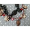 Tolle Halskette aus ca. 30 dunkelbraunen dünnen Bändern in Lederoptik mit vielen vielen verschiedenen Perlen in Braun-, Silber- und Kupfertönen, Länge verstellbar (geöffnet gemessen ca. 42-47 cm)