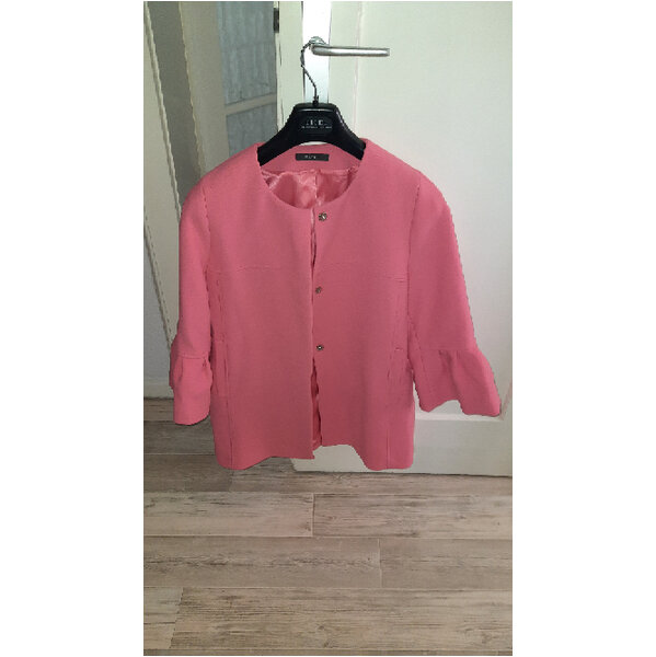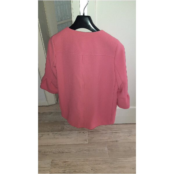 Wie neu, wurde nur 1x getragen und hängt seitdem im Schrank, irgendwie gibt es für mich nicht die Gelegenheit die Jacke zu tragen und dafür ist sie zu schade, die Jacke ist von Achsel zu Achsel ca. 50 cm und etwa 75 cm lang, die Arme sind 3/4 lang, es gibt allerdings 1 kleinen Minifleck auf der Rückseite unten- siehe Foto, Materialmix aus Polyester, Viskose und Elastan