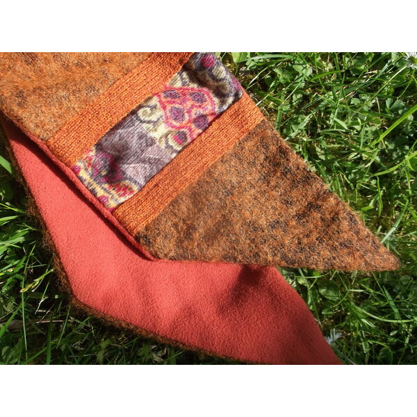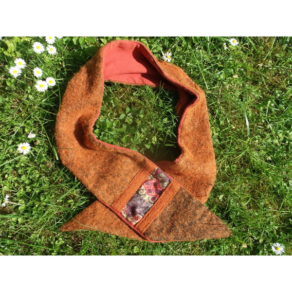 Ein toller kleiner Schal mit großer Wirkung. Aus verschiedenen Materialien und in einzigartigerm Patchwork zusammengestellt. Außen Wollstoff, innen Fleece aus Mix Material mit BW. Ein absolutes Unikat, ein Hingucker!!
