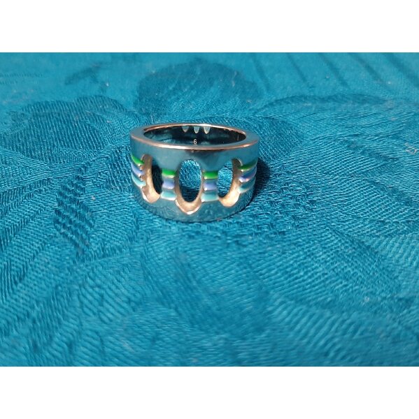Toller original Swatch Bijoux Edelstahl Ring mit Stempel in der Größe 54 in sehr gutem Zustand (siehe Fotos). Höhe 1,2 cm. Bei Fragen PN.