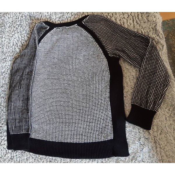 Schöner Grobstrickpullover von Kangaroos. Hier Die Maße: Länge hinten 66 cm; vorne 61 cm. Einfache Brustweite ungedehnt 59 cm; dehnbar bis 68 cm. Bei Fragen PN.