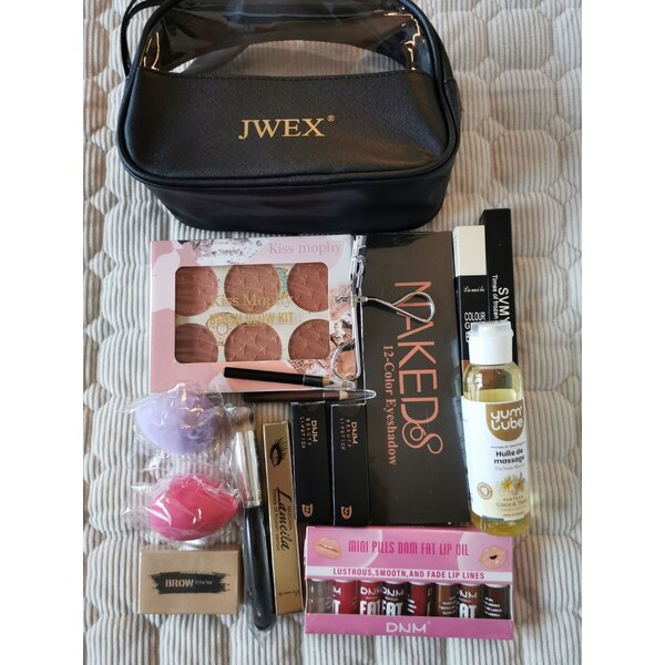 Das make up set für Frauen bestehen aus hautfreundlichen, nicht reizenden Inhaltsstoffen. Steht so dabei. Ganz viele Sachen, vor allem als Starterset super und für unterwegs. Mit passender Tasche.