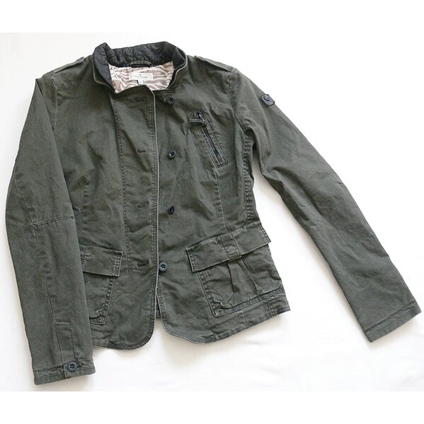 Im sehr guten getragenen Zustand. Im leichten used Look (kleine hellen Stellen an den Taschen, Schultern, am Kragen).