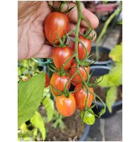 Wunderschöne, rosa-gestreifte kleine Flaschentomaten bringt diese Pflanze hervor. Buschiger Wuchs, Kübelhaltung ist möglich. Knackige Früchte, süß und ausgewogen, intensiv würzig. Hoher Ertrag!