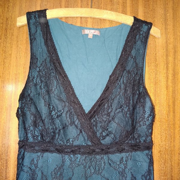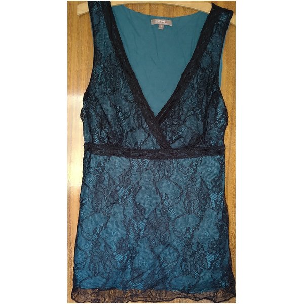 Top, Shirt, Hängerchen, Spitze, S, 36, 38, petrol, schwarz, Damen, karenmacleod