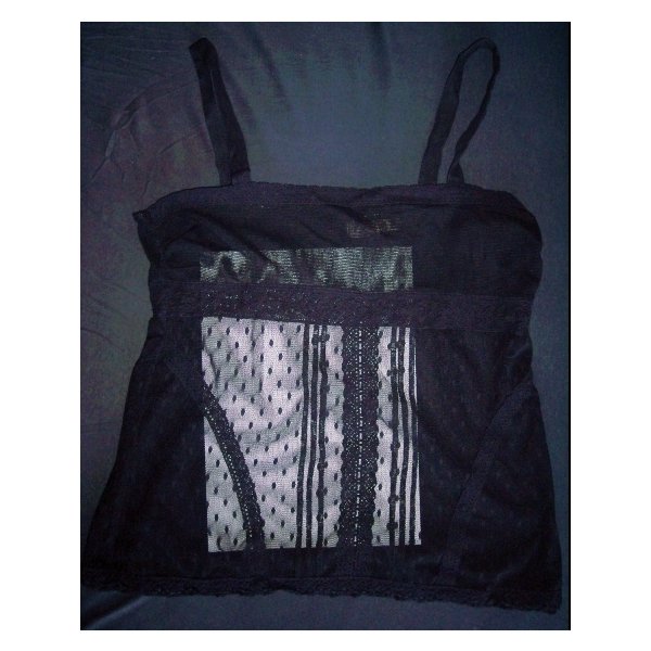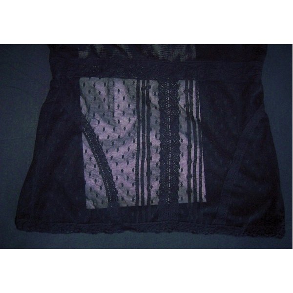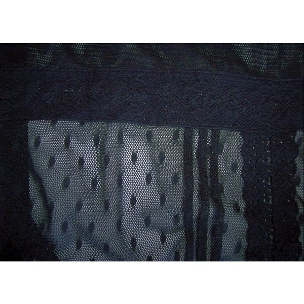 Transparentes, gepunktetes Spitzentop mit vielen Bordüren.