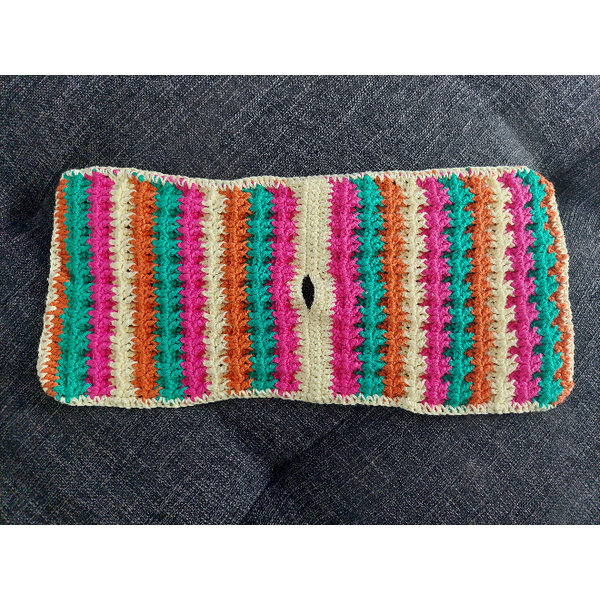 Der etwas andere Topflappen. In der Mitte ist ein Loch. Der Griff vom Topfdeckel wird dort hindurch gesteckt. Artikelmaße ca. 24 x 16 cm