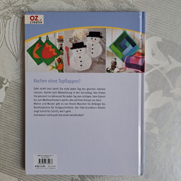 Geht nicht! Und damit Sie nicht jeden Tage den gleichen nehmen müssen, kommt jetzt Abwechslung in den Kochalltag. Hier finden Sie für jeden Tag den richtigen: passend zur Jahreszeit, zu Fest- und Feiertagen oder zu bestimmten Gerichten. Vom Osterei bis zum Weihnachtsstern warten alle auf ihren Einsatz am Herd. Motive und Muster gibt es von festen Maschen für Anfänger bis Reliefstäbchen für Fortgeschrittene. Der Foto-Grundkurs Häkeln zeigt Schritt für Schritt wie’s geht.