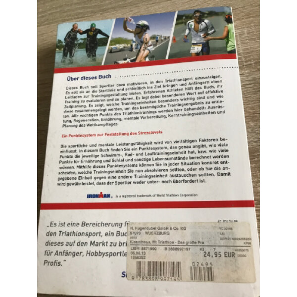Dieses Buch soll Sportler dazu motivieren, in den Triathlonsport einzusteigen. Es soll sie an die Startlinie und schließlich ins Ziel bringen und Anfängern einen Leitfaden zur Trainingsgestaltung bieten. Erfahrenen Athleten hilft das Buch, ihr Training zu evaluieren und zu planen. Es legt dabei besonderen Wert auf effektive Zeitplanung. Es zeigt, welche Trainingseinheiten besonders wichtig sind und wie diese zusammengelegt werden, um das bestmögliche Trainingsergebnis zu erzielen. Alle wichtigen Punkte des Triathlontrainings werden hier behandelt: Ausrüstung, Regeneration, Ernährung, mentale Vorbereitung, Kerntrainingseinheiten und Planung des Wettkampftages.
