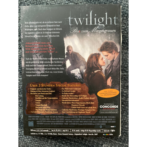 Die 17-jährige Bella Swan zieht zu ihrem Vater in ein verschlafenes Städtchen im Nordwesten der USA. Bella fühlt sich etwas verloren in der neuen Umgebung. Ihre Verwirrung wird noch gesteigert, als sie an der Highschool dem mysteriösen Edward Cullen begegnet. Der blasse junge Mann übt von Anfang an eine unerklärliche Anziehungskraft auf Bella aus - obwohl, oder vielleicht gerade weil er sich ihr gegenüber äußerst zurückhaltend verhält. Sie ahnt, dass Edward ein Geheimnis umgibt, von dem keiner etwas wissen darf. Als Bella von Edward vor einem heranrasenden Auto gerettet wird, indem er das Fahrzeug mit einer Hand zum Stillstand bringt, wird ihr endgültig klar, dass sie es nicht mit einem gewöhnlichen Menschen zu tun hat. Edward ist wie der Rest seiner Familie ein Vampir - unsterblich und mit übersinnlichen Kräften begabt, aber dazu verdammt, sich vom Blut anderer Kreaturen zu ernähren...
