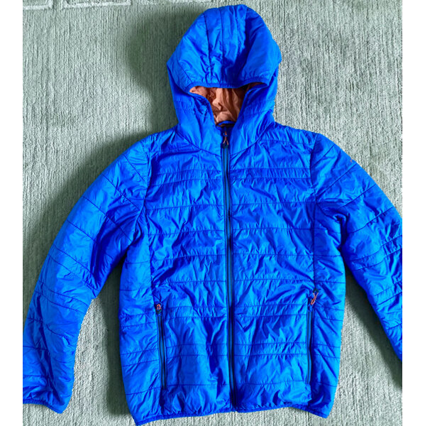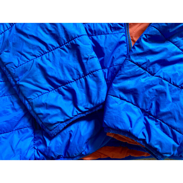 Leichte, aber wärmende Jacke mit zwei Taschen und Reißverschluss. Sie wurde getragen, siehe das Foto mit dem Pilling an den Bündchen Abschlüssen und am Ärmel ein kleines Loch.