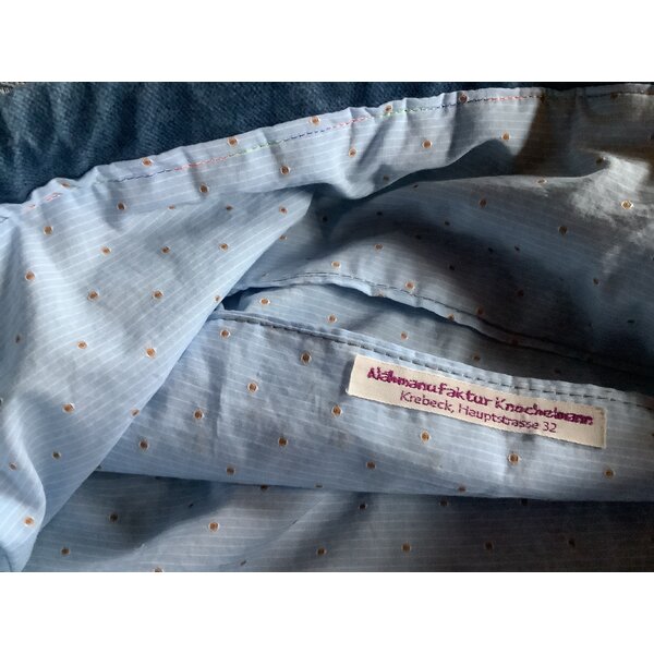 Schöner geräumiger Umhängebeutel,mit Innenfutter und Innentasche.Am unteren dunklen Stoff leichte Abschabung an einer Stelle/Foto.