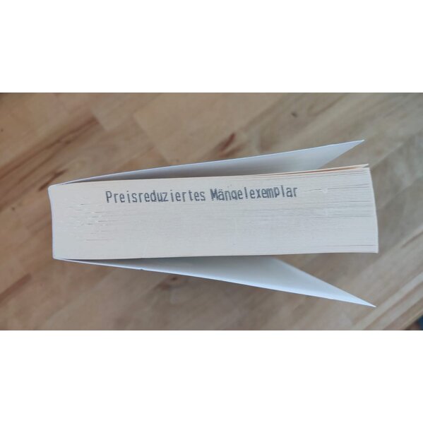 Ungelesenes Mängelexemplar mit entsprechendem Stempel und Stanzung im unteren Buchschnitt sowie Stanzung auf dem rückwärtigen Cover und den letzten ca. 20 Seiten. Werbeaufkleber auf dem vorderen Cover.