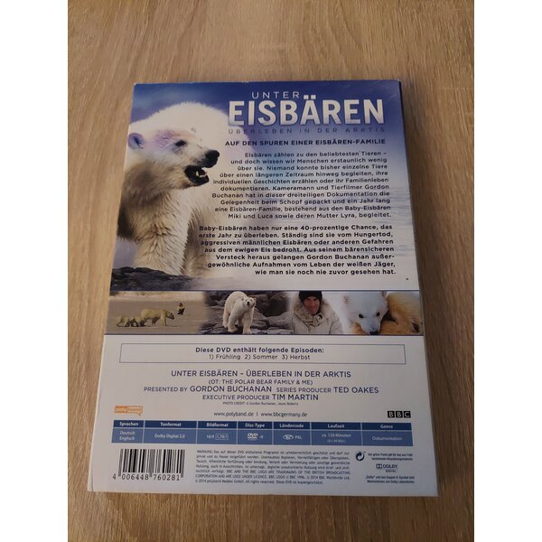 Auf den Spuren einer Eisbären-FamilieEisbären zählen zu den beliebtesten Tieren - und doch wissen wir Menschen erstaunlich wenig über sie. Niemand konnte bisher einzelne Tiere über einen längeren Zeitraum hinweg begleiten, ihre individuellen Geschichten erzählen oder ihr Familienleben dokumentieren. Kameramann und Tierfilmer Gordon Buchanan hat in dieser dreiteiligen Dokumentation die Gelegenheit beim Schopf gepackt und ein Jahr lang eine Eisbären-Familie, bestehend aus den Baby-Eisbären Miki und Luca sowie deren Mutter Lyra, begleitet. Baby-Eisbären haben nur eine 40-prozentige Chance, das erste Jahr zu überleben. Ständig wird ihr Leben vom Hungertod, aggressiven männlichen Eisbären oder den Gefahren aus dem ewigen Eis bedroht. Aus seinem bärensicheren Versteck heraus gelangen Gordon Buchanan außergewöhnliche Aufnahmen vom Leben der weißen Jäger, wie man sie noch nie zuvor gesehen hat.