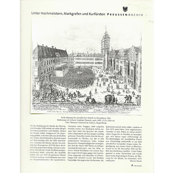 Erbhuldigung der preußischen Stände in Königsberg 1663. Radierung von Jhann Gottfried Bartsch, nach 1663 - Maße 47,4 cm x 59.8 cm