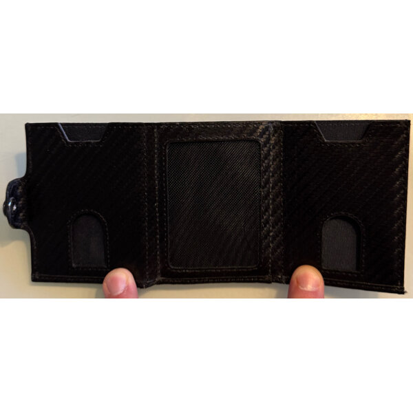 SCHEINFACH - Das Kartenetui kann bis zu 200 Euro große Scheine aufnehmen. Kein umständliches Falten wie bei anderen Smart Wallet nötig! Männer wollen etwas kleines Dünnes - flach, modern und robust.