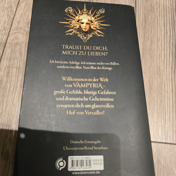 Jeanne Froidelac wird sterben. Denn sie befindet sich gegen ihren Willen in der Kutsche eines in sie verliebten adeligen Vampirs auf dem Weg nach Versailles. Am Hof der Finsternis herrscht nämlich seit 300 Jahren Ludwig der Unwandelbare als König der Vampire. Während die Adeligen nichts mehr begehren, als durch die Gunst des einstigen Sonnenkönigs unsterblich zu werden, müssen einfache Menschen wie Jeanne ihr Blut als Steuer abgeben. Doch zum Glück wird sie für eine Adelige gehalten, die nach ihrer Ausbildung in eine Vampirin verwandelt werden soll, falls sie die gefährlichen Prüfungen besteht. Doch Jeanne hat andere Pläne: Sie wird dem König nicht dienen, sondern ihn stürzen! Denn sie kennt nur ein Ziel: Rache...