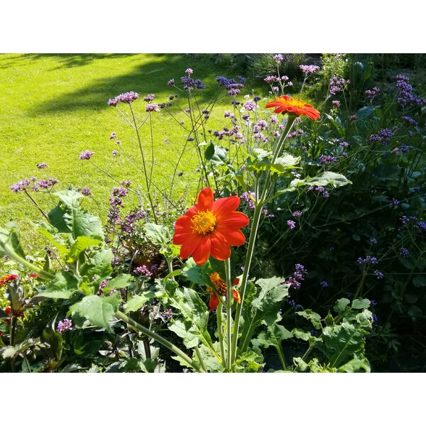 Das dritte Foto zeigt die Pflanzen mit einer mex. Sonnenblume im Vordergrund.